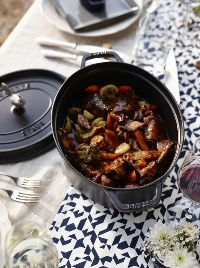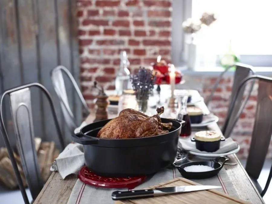 Żeliwne naczynia francuskiej firmy Staub są gwarancją jakości zarówno dla samego produktu, jak i przygotowywanych potraw. Naczynia są wykonane ze stali żeliwnej, w środku są pokryte podwójną warstwą porcelanowej emalii, co zapobiega przypalaniu się potraw oraz pozwala na łatwe ich czyszczenie. Pokrywka posiada system wypustek oraz zagłębień, które odprowadzaną wodę w czasie gotowania skraplają do potrawy – dbając, by zachować balans wilgotności przygotowywanych potraw. Pokrywki również można używać w piekarniku – posiadają niklowe uchwyty. Garnki Staub można stosować nie tylko w piekarniku – są idealne również na wszystkie rodzaje kuchenek, w tym indukcyjne. Marka cieszy się dużym powodzeniem wśród profesjonalnych kucharzy znamienitych restauracji, gdzie często serwuje się potrawy wprost z naczynia, stawiając je przed Klientem na stole.