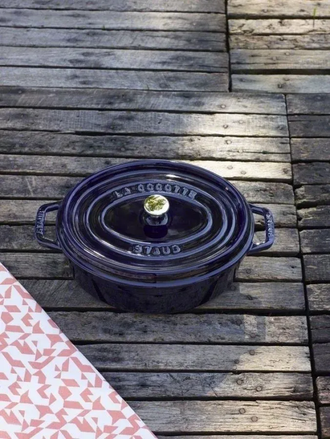 Żeliwne naczynia francuskiej firmy Staub są gwarancją jakości zarówno dla samego produktu, jak i przygotowywanych potraw. Naczynia są wykonane ze stali żeliwnej, w środku są pokryte podwójną warstwą porcelanowej emalii, co zapobiega przypalaniu się potraw oraz pozwala na łatwe ich czyszczenie. Pokrywka posiada system wypustek oraz zagłębień, które odprowadzaną wodę w czasie gotowania skraplają do potrawy – dbając, by zachować balans wilgotności przygotowywanych potraw. Pokrywki również można używać w piekarniku – posiadają niklowe uchwyty. Garnki Staub można stosować nie tylko w piekarniku – są idealne również na wszystkie rodzaje kuchenek, w tym indukcyjne. Marka cieszy się dużym powodzeniem wśród profesjonalnych kucharzy znamienitych restauracji, gdzie często serwuje się potrawy wprost z naczynia, stawiając je przed Klientem na stole.