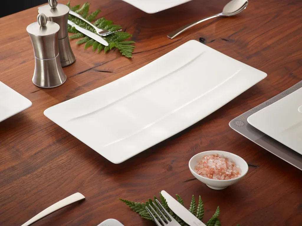 Modern Grace to niezwykła różnorodność kształtów, oszczędna estetyka i harmonia łagodnych zaokrągleń i wyrazistych konturów. Kolekcja ta jest elegancka i ponadczasowa. Naczynia wykonane są z wyjątkowo cienkiej i szlachetnej porcelany kostnej Premium. Odznaczają się niezwykłą lekkością i połyskiem oraz geometrycznymi kształtami takimi jak kwadrat, prostokąt, owal czy okrąg. Rozmaitość elementów i ich wyważone proporcje stwarzają ogromne możliwości w zakresie aranżacji stołu i serwowania potraw – w zawsze nowej, niepowtarzalnej kombinacji form. Biały kolor zastawy nie ogranicza w doborze kolorowych dodatków, takich jak obrusy, wazony, świeczniki, podkładki – w zależności od nastroju i okazji możemy dowolnie zmieniać charakter naszego stołu, z klasycznego i spokojnego w spektakularny i kolorowy. Geometryczne formy kolekcji Modern Grace idealnie dopasują się do każdego wnętrza i każdych dekoracji.
