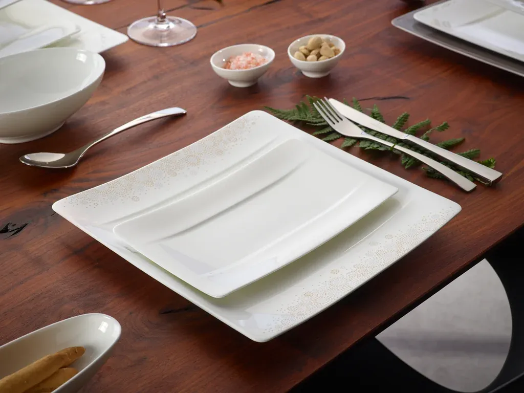 Modern Grace to niezwykła różnorodność kształtów, oszczędna estetyka i harmonia łagodnych zaokrągleń i wyrazistych konturów. Kolekcja ta jest elegancka i ponadczasowa. Naczynia wykonane są z wyjątkowo cienkiej i szlachetnej porcelany kostnej Premium. Odznaczają się niezwykłą lekkością i połyskiem oraz geometrycznymi kształtami takimi jak kwadrat, prostokąt, owal czy okrąg. Rozmaitość elementów i ich wyważone proporcje stwarzają ogromne możliwości w zakresie aranżacji stołu i serwowania potraw – w zawsze nowej, niepowtarzalnej kombinacji form. Biały kolor zastawy nie ogranicza w doborze kolorowych dodatków, takich jak obrusy, wazony, świeczniki, podkładki – w zależności od nastroju i okazji możemy dowolnie zmieniać charakter naszego stołu, z klasycznego i spokojnego w spektakularny i kolorowy. Geometryczne formy kolekcji Modern Grace idealnie dopasują się do każdego wnętrza i każdych dekoracji.