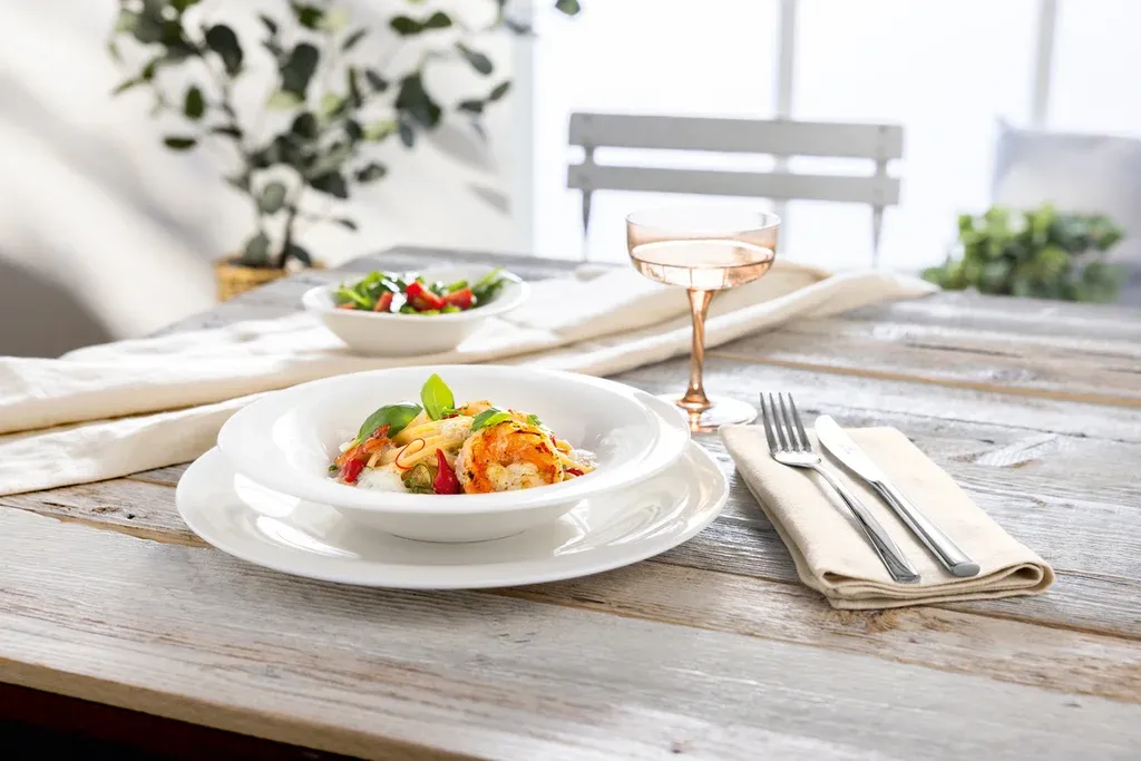 New Cottage Basic to biała zastawa, wykonana z porcelany Premium, wyróżniająca się subtelną elegancją. Kolekcja ta wykorzystuje harmonizujące ze sobą kształty inspirowane naturą. Sprawia wrażenie delikatnej, a przy tym doskonale odpowiada potrzebom nowoczesnego stylu życia. Osoby, które przywiązują wagę do tradycyjnych wartości, ale zarazem nie uciekają od nowoczesności, z pewnością zachwycą się kształtami New Cottage Basic. Produkty te pozwolą pięknie nakryć stół, a tym samym wykreować harmonijne otoczenie o indywidualnym charakterze. Wszystkie kształty naczyń doskonale ze sobą współgrają. Płynne przejście między dnem a brzegiem talerzy przywodzi na myśl formę filiżanki. Atrakcyjnym akcentem naczyń są uchwyty przypominające stylizowany liść.