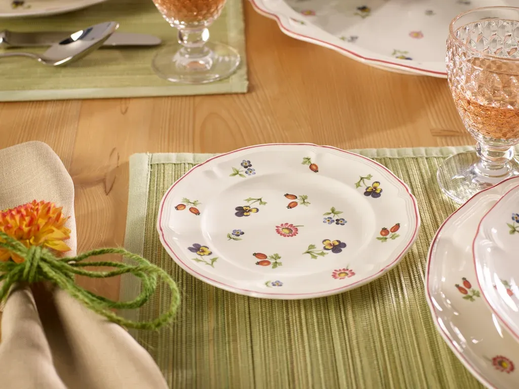 Głównym motywem zdobniczym linii Petite Fleur są delikatne, małe kwiaty: niezapominajki, stokrotki, bratki i owoce dzikiej róży. Dekory wykonane zostały z wielką starannością i dbałością o detale. Kolekcja z pewnością urzeknie tych, którzy zachwycają się atmosferą łąki i pragną urządzić swój dom w przytulnym, rustykalnym stylu, a przy tym cenią sobie wysoką jakość produktów i renomowaną markę.