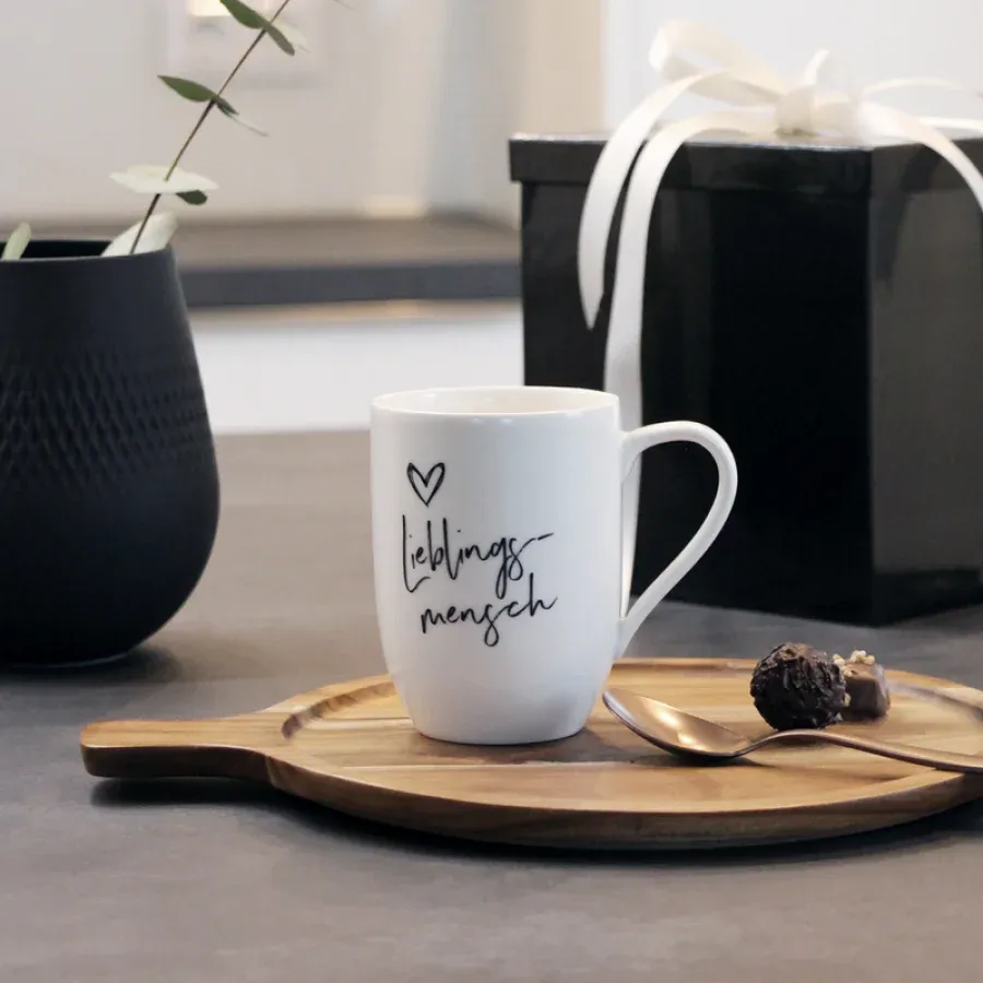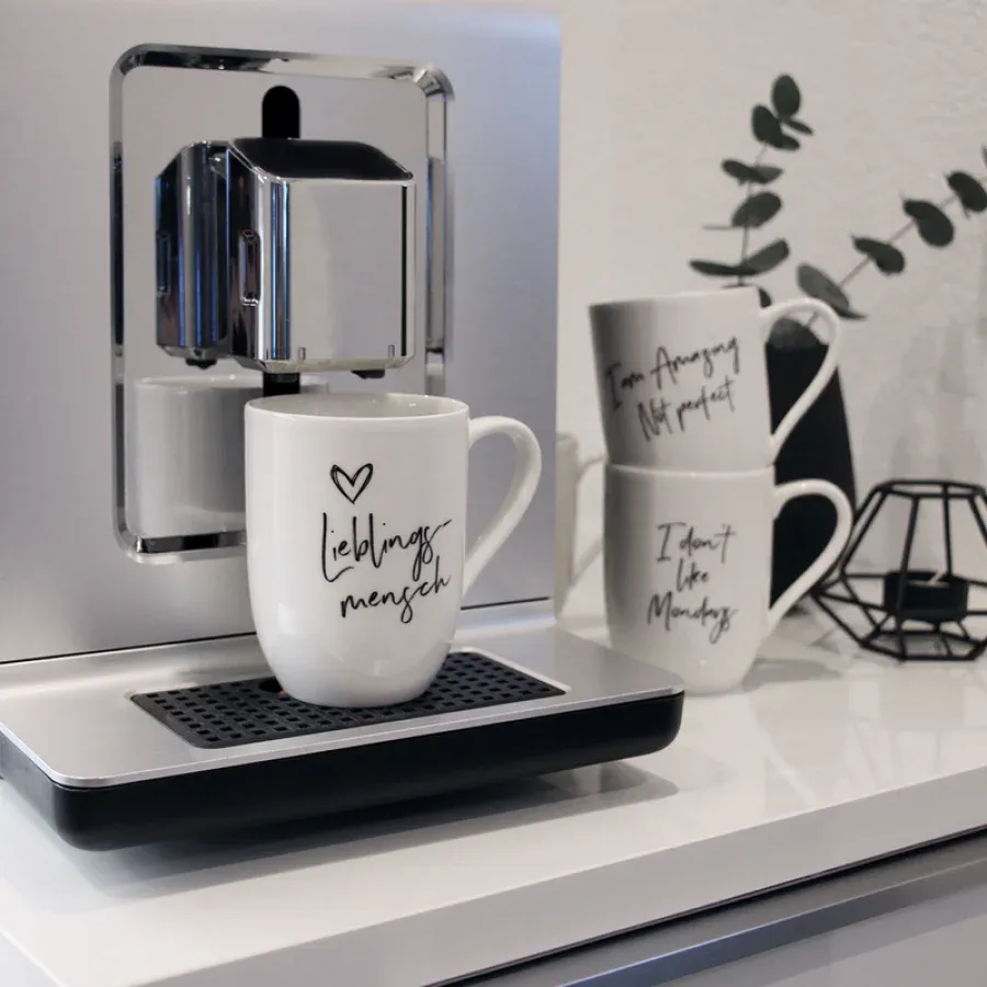 Wyraź siebie w kilku słowach! Klasyczna biała porcelana ze szkliwionym hasłem, imitacja czarnego markera. Doskonały pomysł na prezent!
