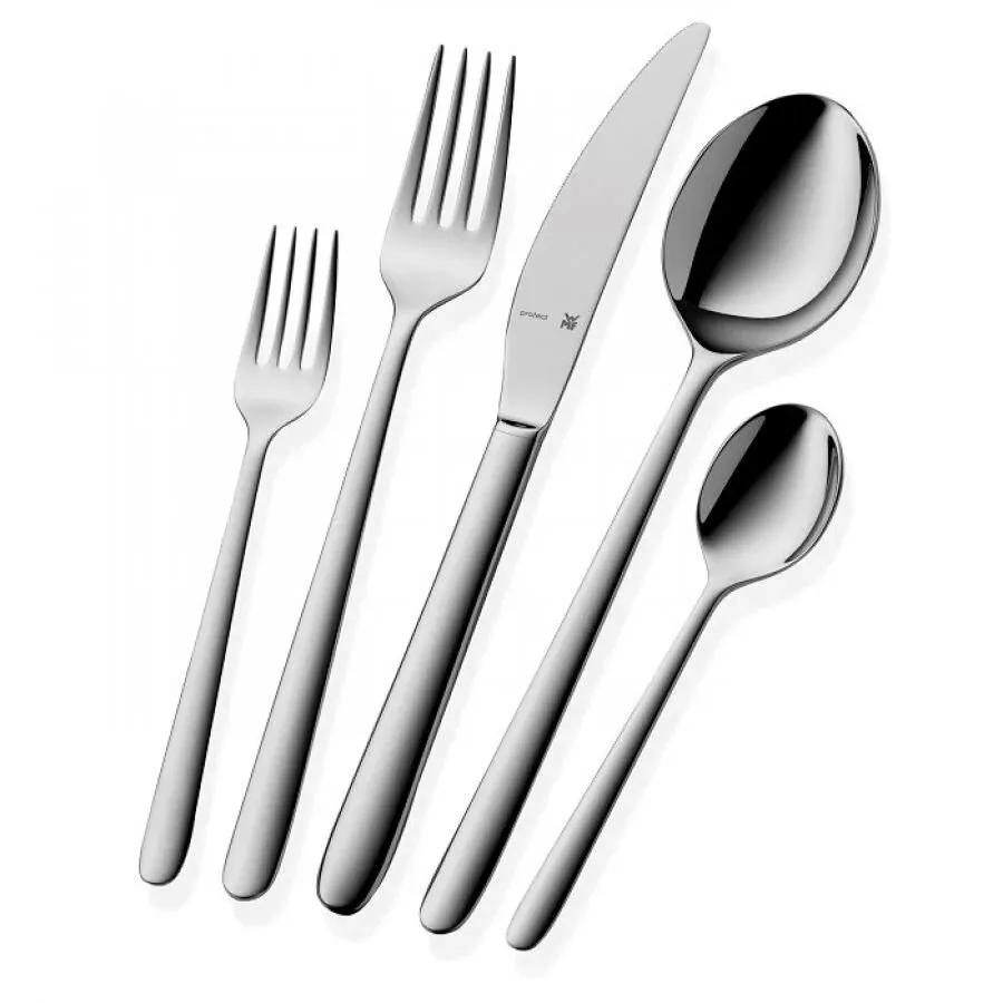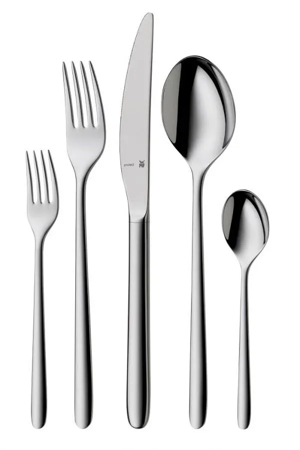 Sztućce wyprodukowane ze stali nierdzewnej Cromargan® Protect – opatentowany przez WMF stop metali, odporny na uszkodzenia i zadrapania, działanie kwasów z warzyw i owoców, nie absorbuje zapachów, dzięki niemu nawet po latach użytkowania sztućce pozostają bez rys.